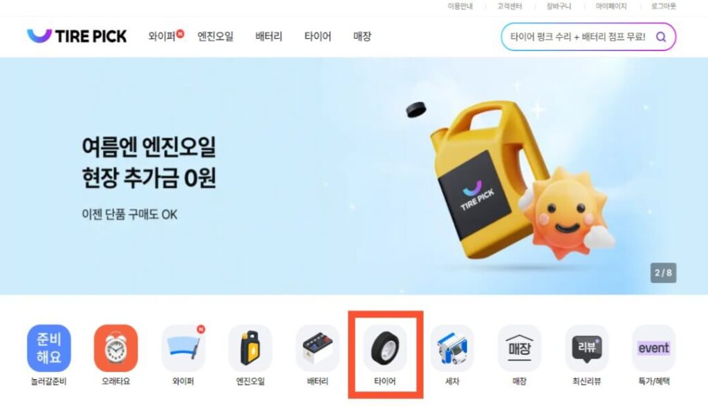 타이어픽은 자동차 타이어 및 차량 관련 부품을 온라인으로 구매하고, 간편하게 교체할 수 있는 플랫폼입니다. 타이어픽 사이트에서는 차량 번호를 입력하면 해당 차량에 맞는 타이어 사이즈와 교체 가능한 타이어 리스트를 확인할 수 있습니다.