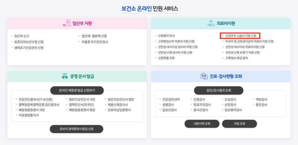 오프라인 신청은 난임부부의 여성의 주소지 관할 시, 군, 구 보건소에 방문하여 신청이 가능합니다.