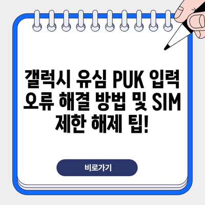 갤럭시 유심 PUK 입력 오류 해결 방법 및 SIM 제한 해제 팁!