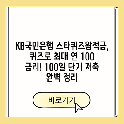 KB국민은행 스타퀴즈왕적금, 퀴즈로 최대 연 100 금리! 100일 단기 저축 완벽 정리