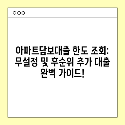 아파트담보대출 한도 조회: 무설정 및 후순위 추가 대출 완벽 가이드!