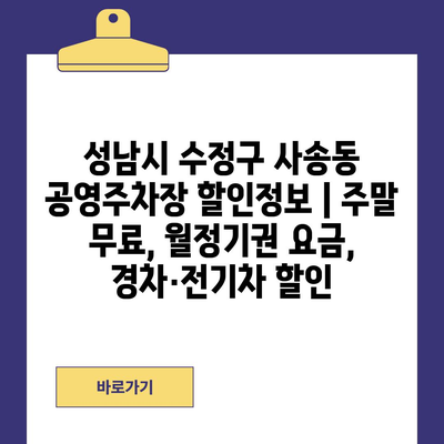 성남시 수정구 사송동 공영주차장 할인정보 | 주말 무료, 월정기권 요금, 경차·전기차 할인