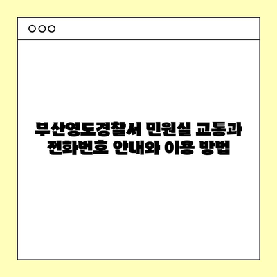 부산영도경찰서 민원실 교통과 전화번호 안내와 이용 방법