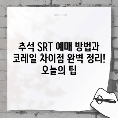 추석 SRT 예매 방법과 코레일 차이점 완벽 정리! 오늘의 팁