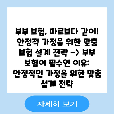 부부 보험, 따로보다 같이! 안정적 가정을 위한 맞춤 보험 설계 전략 -> 부부 보험이 필수인 이유: 안정적인 가정을 위한 맞춤 설계 전략