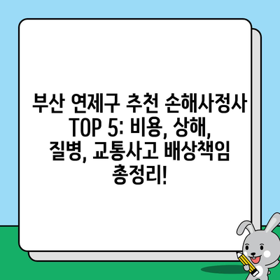 부산 연제구 추천 손해사정사 TOP 5: 비용, 상해, 질병, 교통사고 배상책임 총정리!