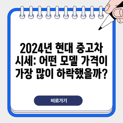 2024년 현대 중고차 시세: 어떤 모델 가격이 가장 많이 하락했을까?