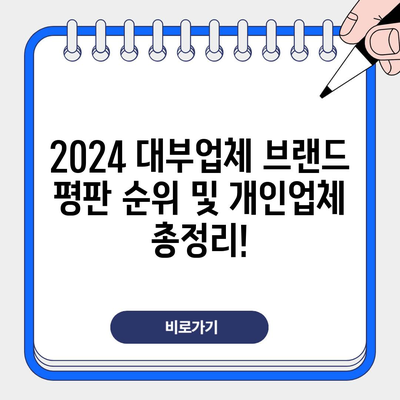 2024 대부업체 브랜드 평판 순위 및 개인업체 총정리!