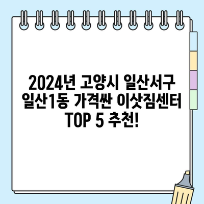 2024년 고양시 일산서구 일산1동 가격싼 이삿짐센터 TOP 5 추천!